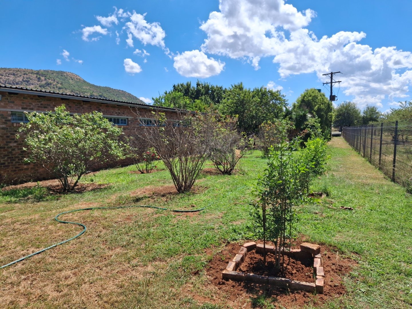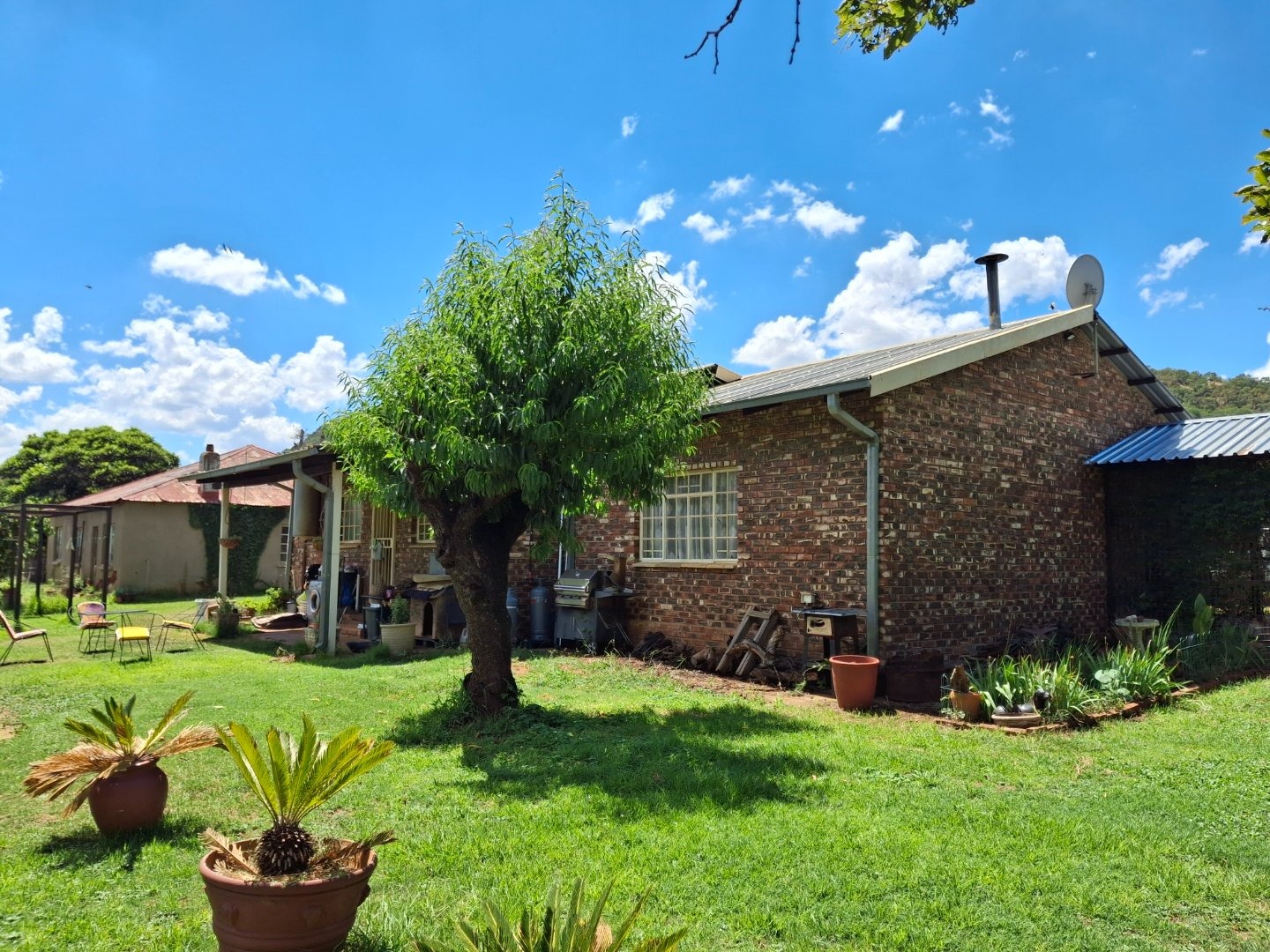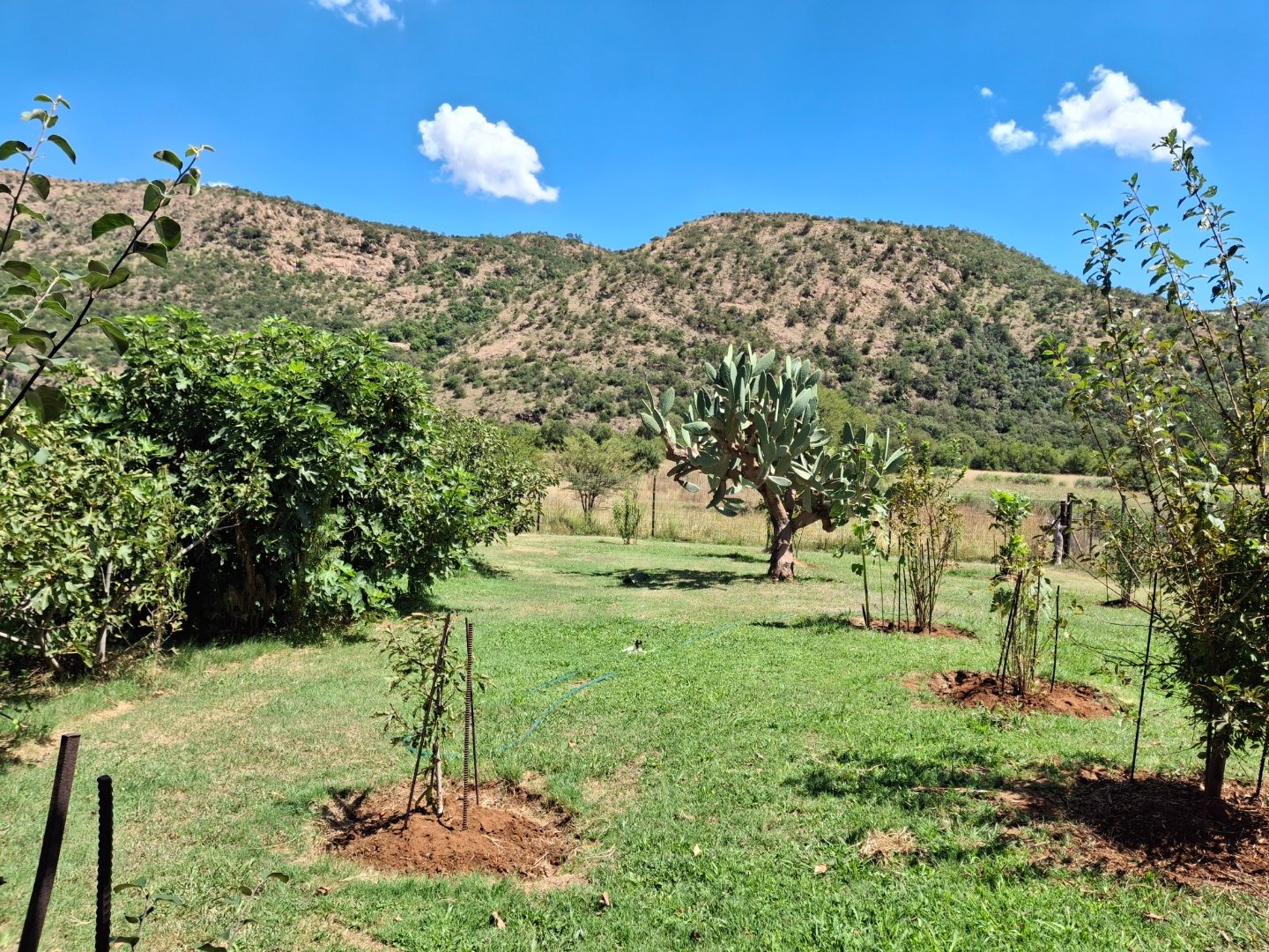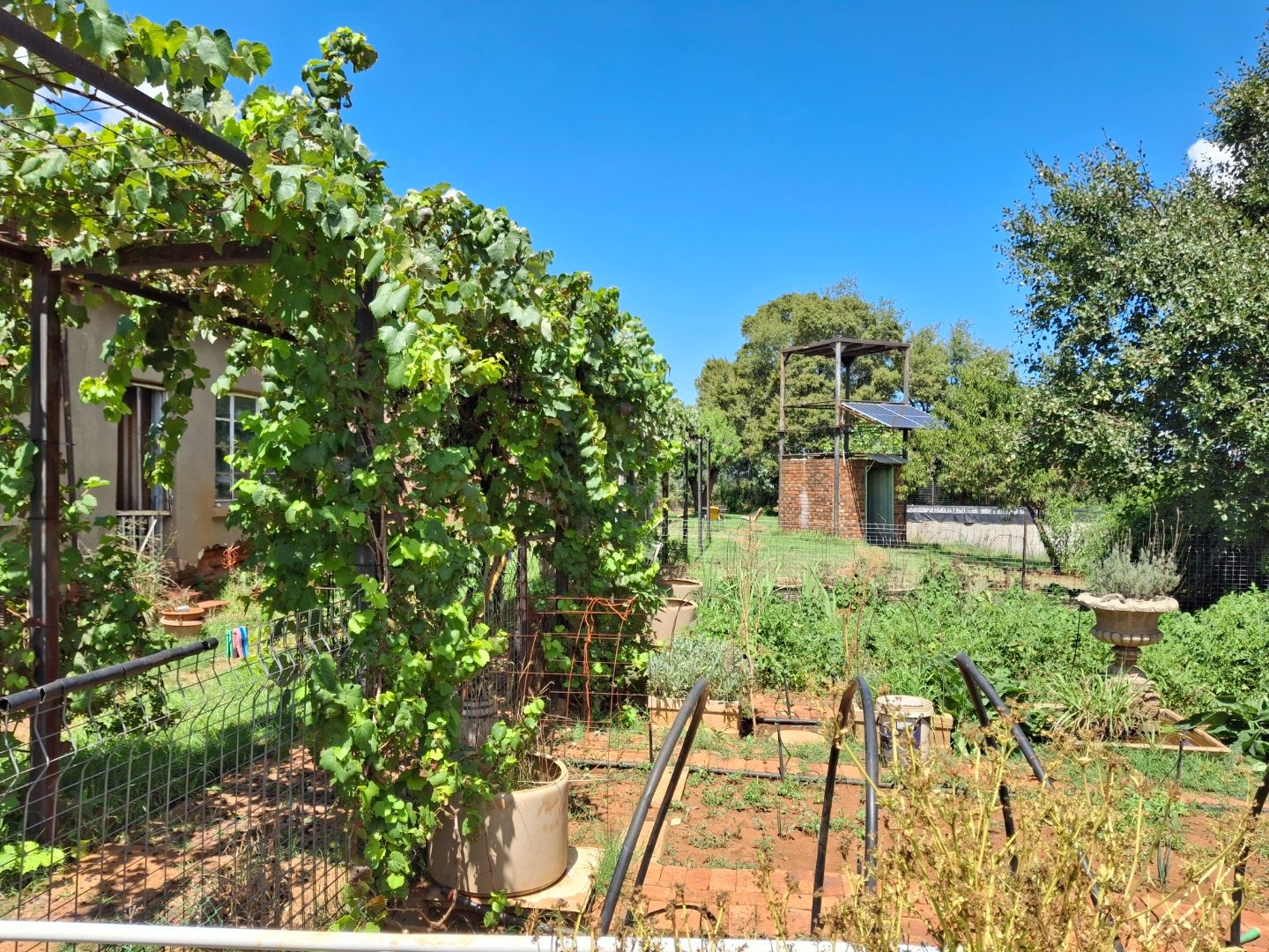 Established fruit trees including peaches, apricots, pomegranates, figs, prickly pears and grapes can easily provided for making jams etc, or selling fruit at a "Padstal" to people visiting the heritage site in the Vredefort Dome.