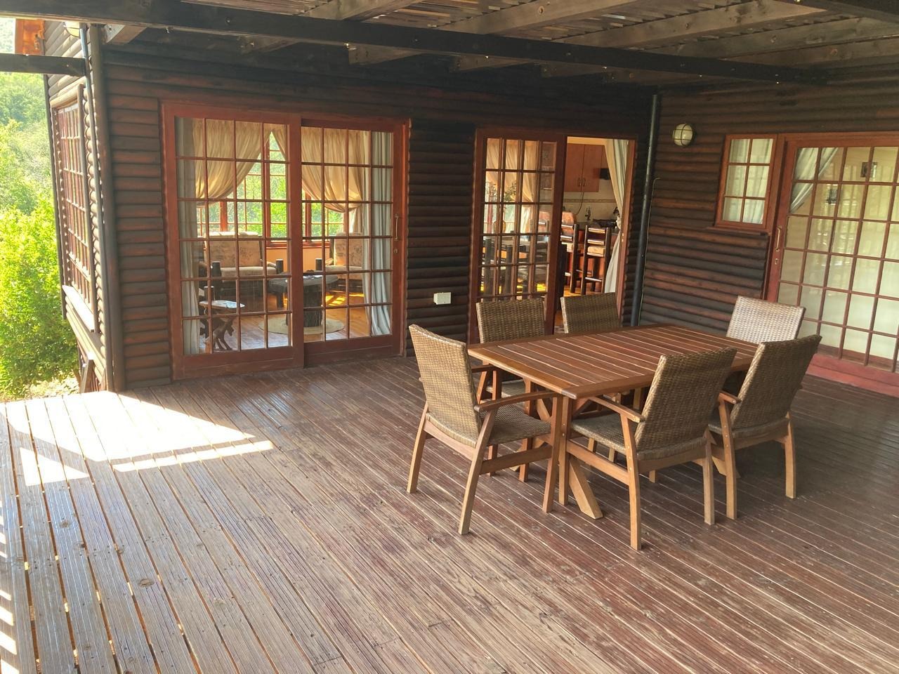 Wooden self catering cottage nestled against the mountain