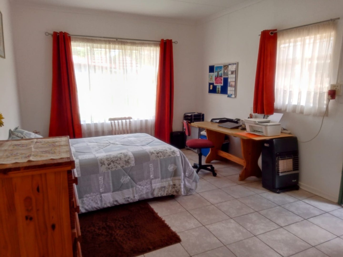 Two Double Bedrooms with cupboards and Carpets for winter time and a fan in one Bedroom for summer time.